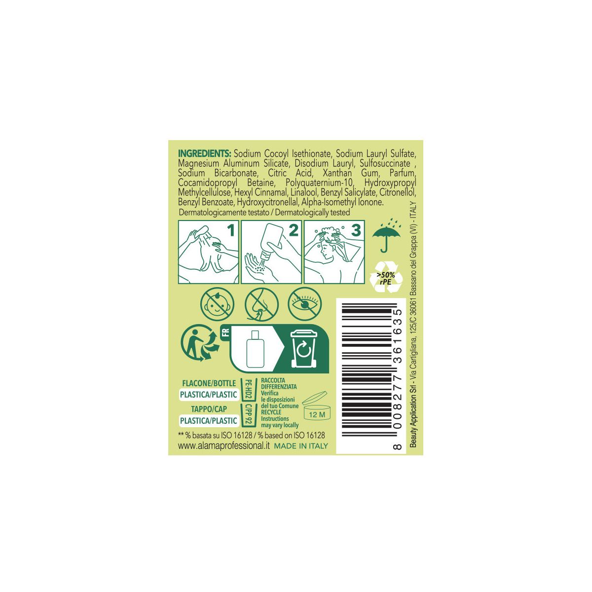 – 40% impatto idrico / Senza SLS/SLES, Solfati e Conservanti / Packaging sostenibile 50% di plastica riciclata / Formula Vegan