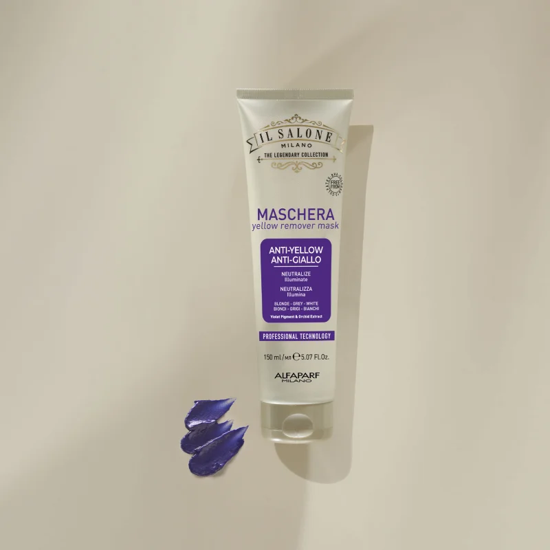 Mantieni belli i tuoi capelli senza toni gialli che ne snaturano l’aspetto. Alfaparf Milano Il Salone Milano Anti-yellow è una maschera neutralizzante per toni gialli, ideale per la cura dei capelli chiari. Grazie al pigmento viola, puoi eliminare le sfumature giallastre indesiderate. Inoltre, l’estratto di orchidea non solo non lascia i capelli secchi, ma li idrata e li lascia naturalmente lucenti.