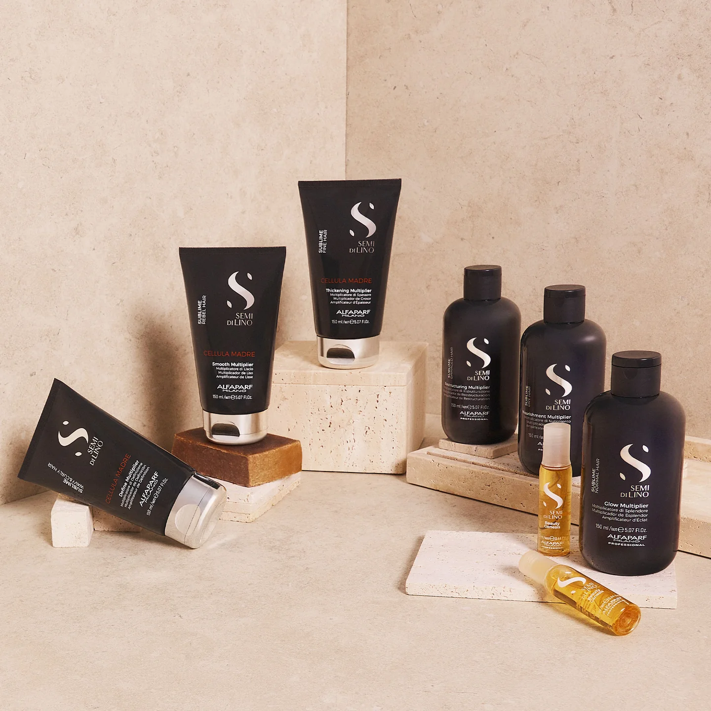 Semi di Lino Cellula Madre Smooth Multiplier è un trattamento professionale ad alta performance studiato per disciplinare, levigare e controllare il crespo, anche sui capelli più difficili da gestire.