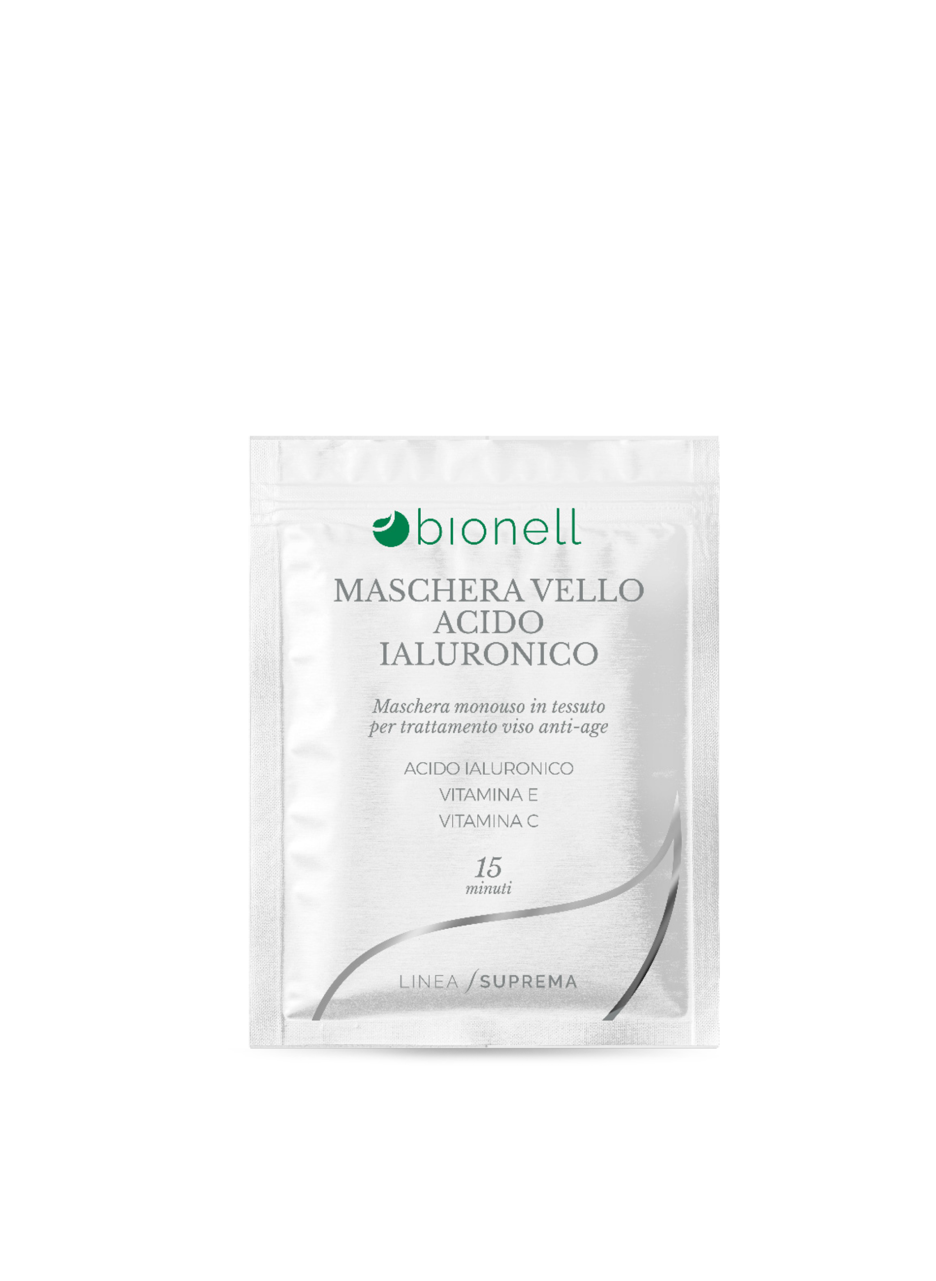 La Maschera Vello all’Acido Ialuronico di Bionell è un trattamento viso monouso in tessuto, formulato per offrire un’idratazione profonda e immediata. Grazie all’azione sinergica dell’acido ialuronico e delle vitamine nutrienti, aiuta a restituire elasticità, tono e luminosità alla pelle, rendendola visibilmente più compatta e levigata.