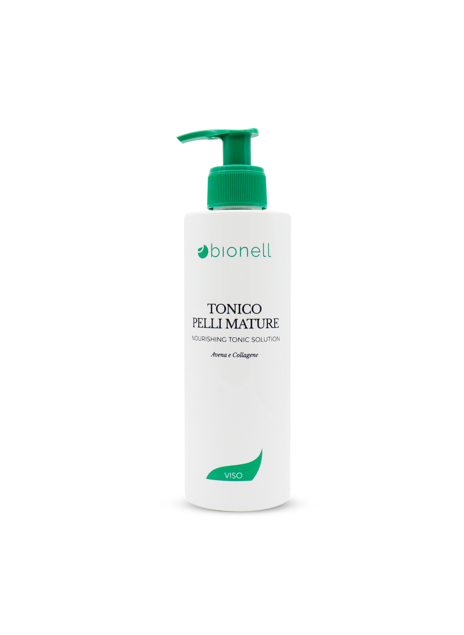 Il Tonico Viso Pelli Mature Bionell con Avena e Collagene è un trattamento ricco di elementi nutritivi idrosolubili, studiato per le esigenze specifiche delle pelli mature, secche e stressate. La sua formula aiuta a ristabilire il corretto metabolismo cellulare, donando alla pelle nutrimento, vitalità e una sensazione di comfort immediata. Ideale per preparare la pelle ai trattamenti successivi, favorisce un aspetto più tonico e luminoso.