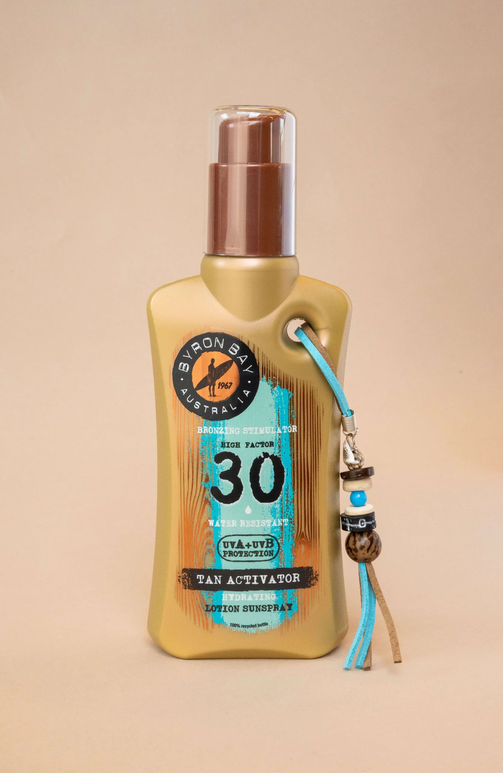 Abbraccia le tue giornate di sole con una pelle perfettamente abbronzata utilizzando la nostra lozione solare attivatrice di abbronzatura SPF 30. La formula unica, infusa con una delicata fragranza estiva, contiene uno stimolatore dell’abbronzatura per un’abbronzatura più profonda. Protegge la pelle dai dannosi raggi UVA e UVB e aiuta a prevenire l’invecchiamento cutaneo indotto dal sole. Ogni bottiglia è decorata con un ciondolo alla moda con vere conchiglie e perline di legno realizzate a mano. Scopri la protezione ottimale e ottieni la perfetta abbronzatura Byron Bay.