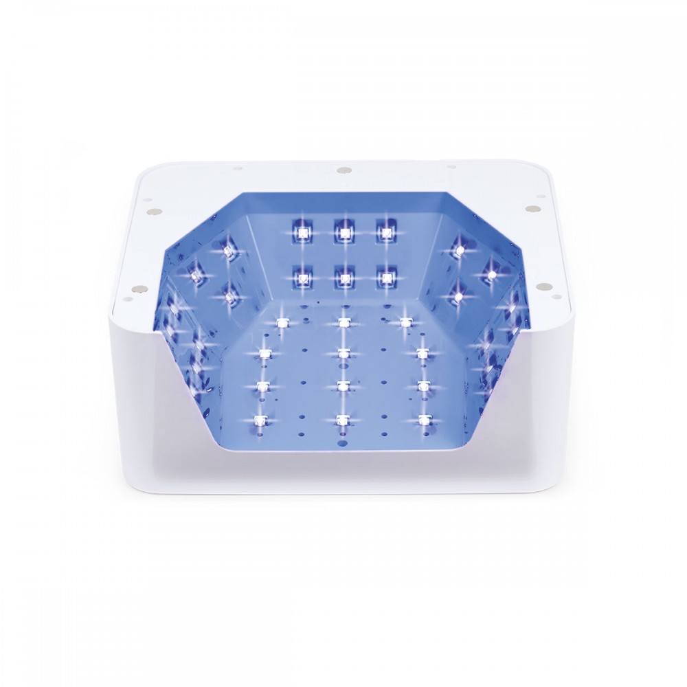 Lampada professionale LED&UV 36W ad alte prestazioni, grazie ai 36 diodi di ultima generazione a tecnologia avanzata. La dimensione del cip interno dei diodi è maggiore rispetto allo standard, grazie a questo la lampada emette il doppio della potenza di irradiazione, effettuando una polimerizzazione più intensa che equivale a una lampada CCFL da 60 W. I diodi sono rivestiti da una copertura in silicone anti UV e sono distribuiti in ogni lato della lampada per una polimerizzazione omogenea. La lampada LUCE attiva gradualmente la sua potenza, sia in modalità standard (da 28W a 36W), che in modalità Low Heat/Sensitive (da 18W a 22W), funzione utile a diminuire la sensazione di calore provocata da alcuni gel in fase di polimerizzazione. Dotata, inoltre, anche della funzione Hand Care per ridurre il calore nel dorso della mano. Il vano interno della lampada è molto ampio, ideale anche nelle ricostruzioni estreme delle unghie con form o cartina. Il timer con effetto sonoro e il display digitale sono collocati sul lato posteriore della lampada, rendendola particolarmente pratica per le professioniste nails.