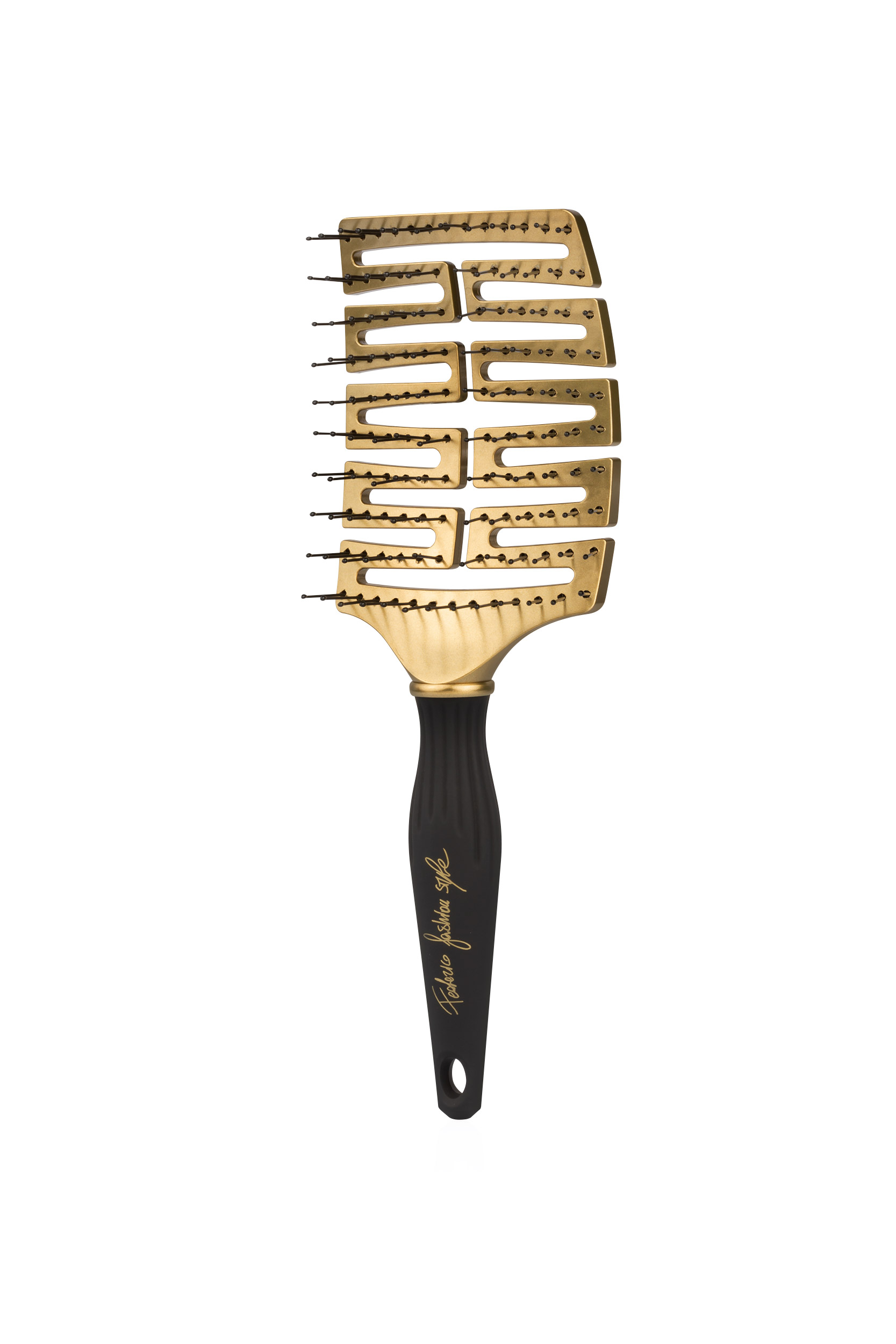Gradevole. Dolce. La sua forma ergonomica è studiata per adattarsi perfettamente alla forma della testa, scivolando facilmente e districando i capelli senza stressarli.