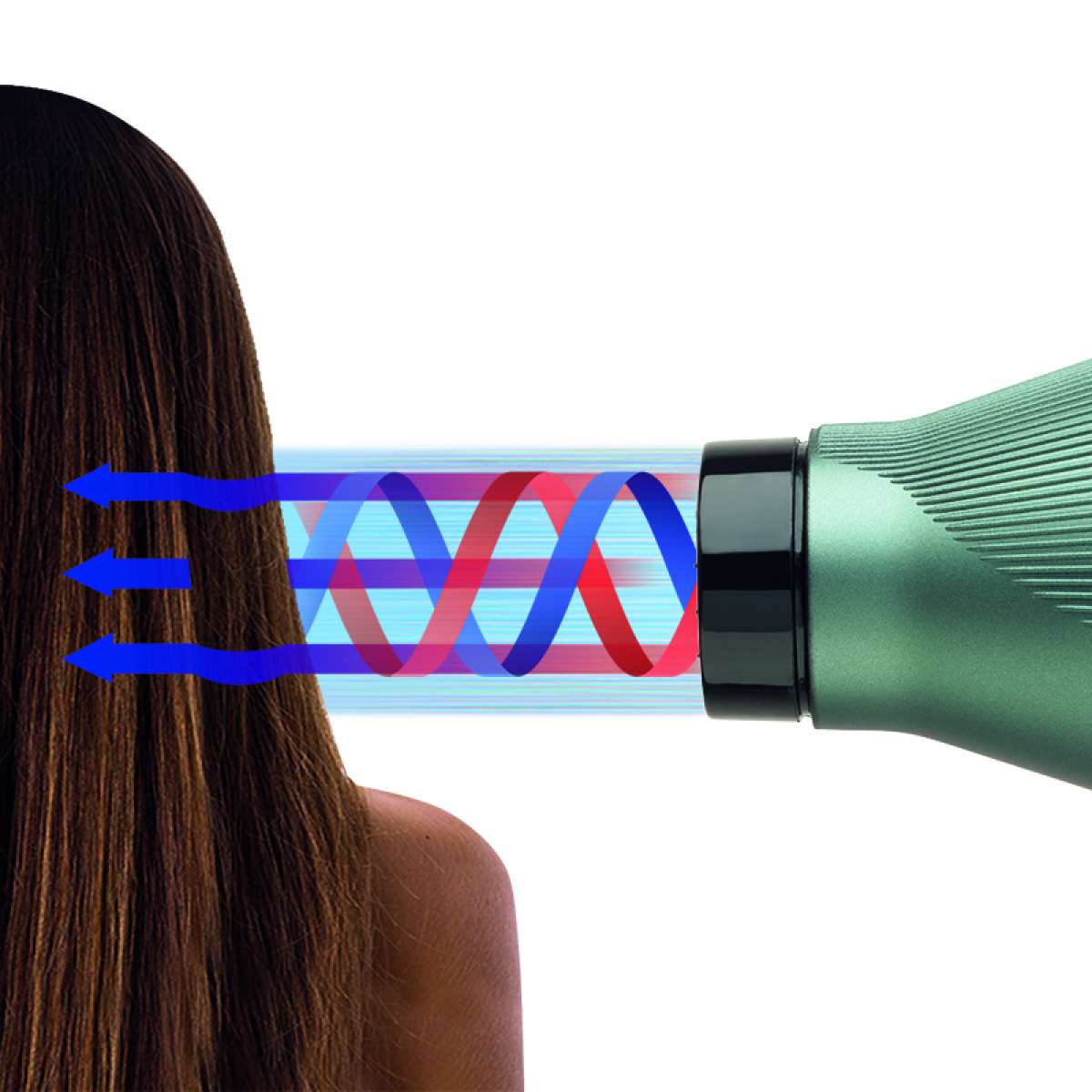- Potente motore professionale ad altre prestazioni: maggiore velocità dell’aria, maggiore pressione sui capelli, asciugatura più rapida, senza il consumo di ulteriore energia
