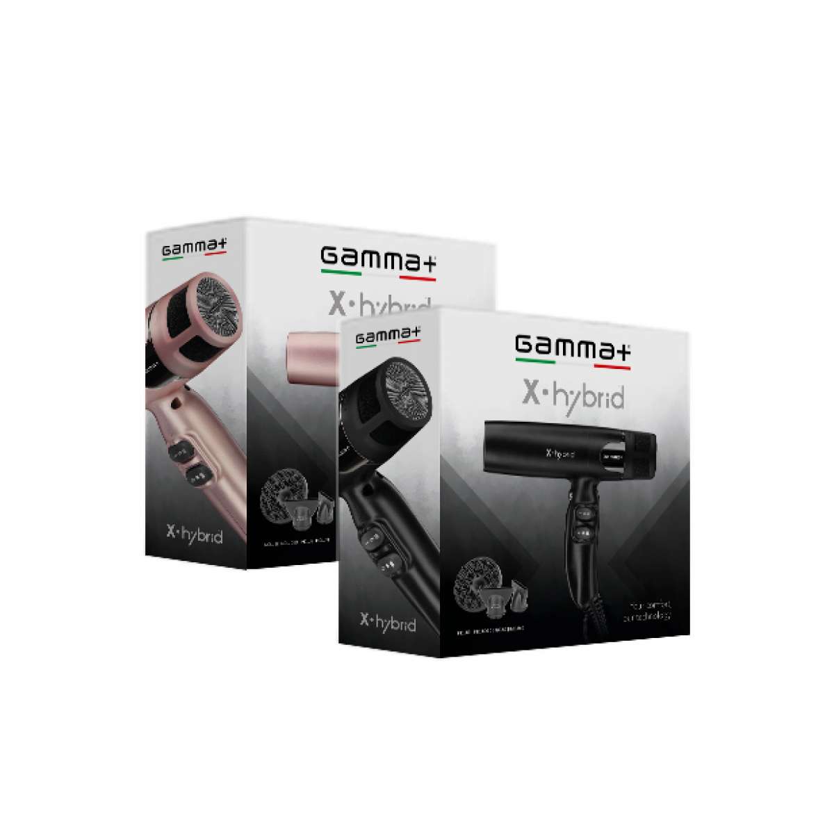 Scopri il massimo delle prestazioni con l’asciugacapelli X•Hybrid Gamma+, il phon professionale dotato di motore digitale da 100.000 giri/minuto e tecnologia ionica avanzata. Progettato per garantire un’asciugatura rapida, precisa e rispettosa del capello, X•Hybrid è lo strumento ideale per hairstylist e appassionati della cura dei capelli.