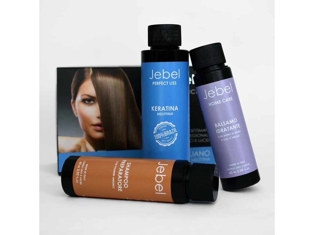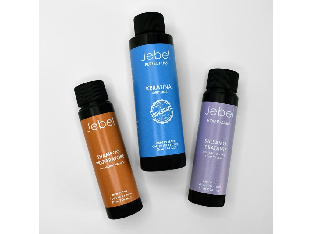 Jebel la nuova linea professionale per la stiratura dei capelli di facile stesura con una durata di oltre 12 settimane. Per garantire una lisciatura immediata oltre la keratina contiene la Melittina, una proteina lisciante naturale dal potere emolliente e condizionante, che favorisce l’idratazione e il ripristino della fibra capillare.