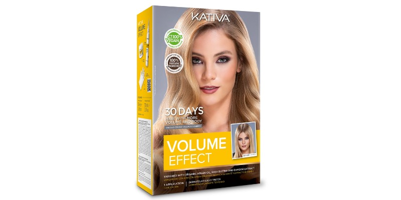 Kit Kativa Volume Effect è arricchito con olio di argan biologico, burro di karitè ed estratto di bambù, che dona ai capelli più corpo e volume per 30 giorni.