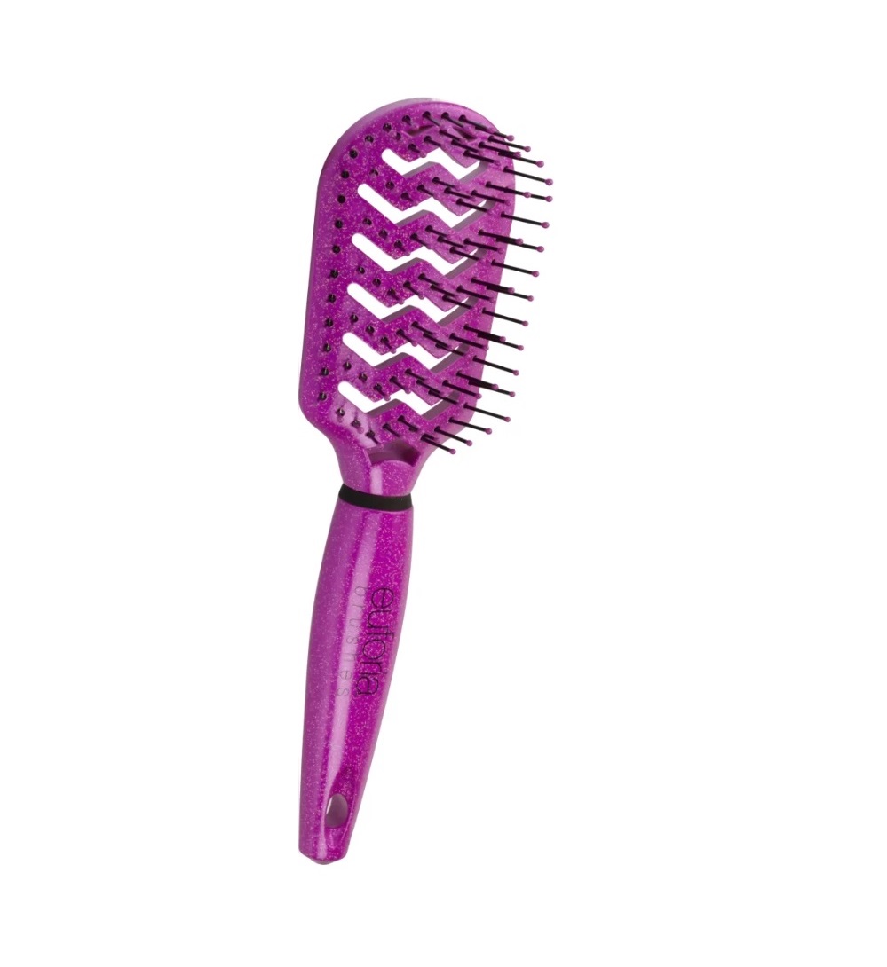 Caratterizzate da un design fucsia glitterato ruvido che assicura un ottimo grip, per un’impugnatura facilitata senza il rischio di “scivolare tra le mani”, e da setole in nylon con la punta ergonomica – arrotondata – ideali per districare i capelli delicatamente, anche quelli più fini, evitando di sfibrarli o danneggiarli.