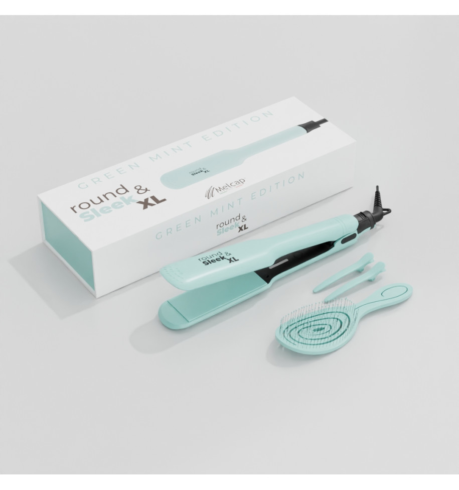 La Melcap XL Round & Sleek Green Mint è la piastra ideale per chi vuole uno styling rapido e impeccabile anche su capelli lunghi, folti o difficili da domare. Le sue piastre extra-large coprono più superficie a ogni passata, riducendo notevolmente i tempi e garantendo un liscio uniforme dalla radice alle punte.