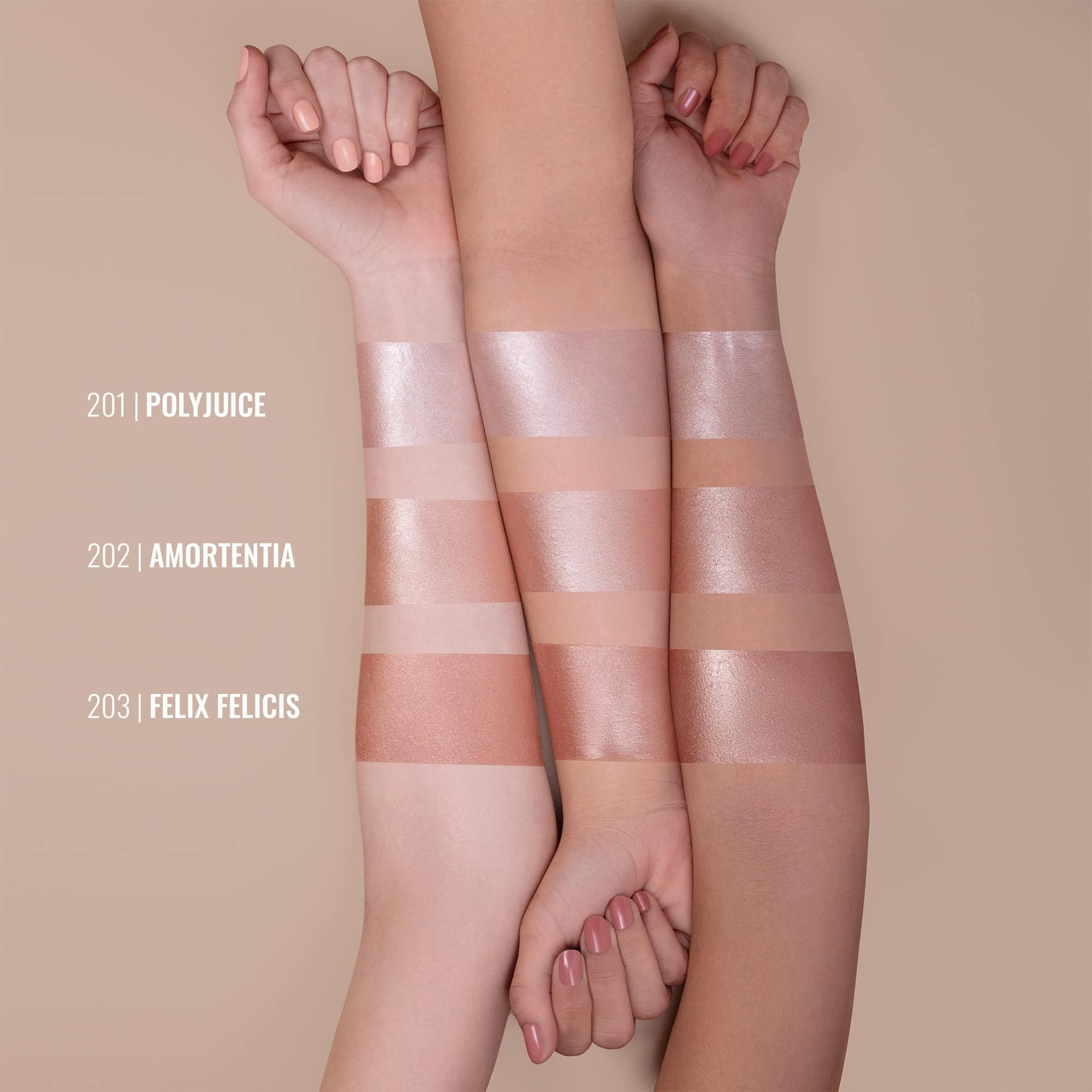 Light Potion è l’illuminante liquido che esalta l’incarnato donando un ammaliante effetto glowy. Con una piccola quantità di questa magica pozione sui punti strategici del viso puoi realizzare un sofisticato look luminoso. Miscelandolo al fondotinta o al primer puoi ottenere un radioso effetto “yoga skin”. Disponibile in 3 tonalità.