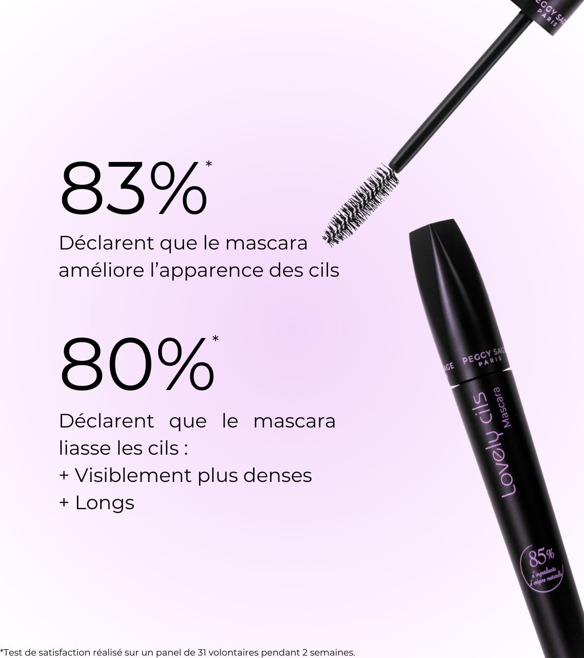 Amato da migliaia di utenti, Lovely Cils è il mascara più venduto di Peggy Sage. Continua a sedurre grazie ai suoi risultati eccezionali: le ciglia sono valorizzate, rivelando una lunghezza perfetta e una densità notevole.