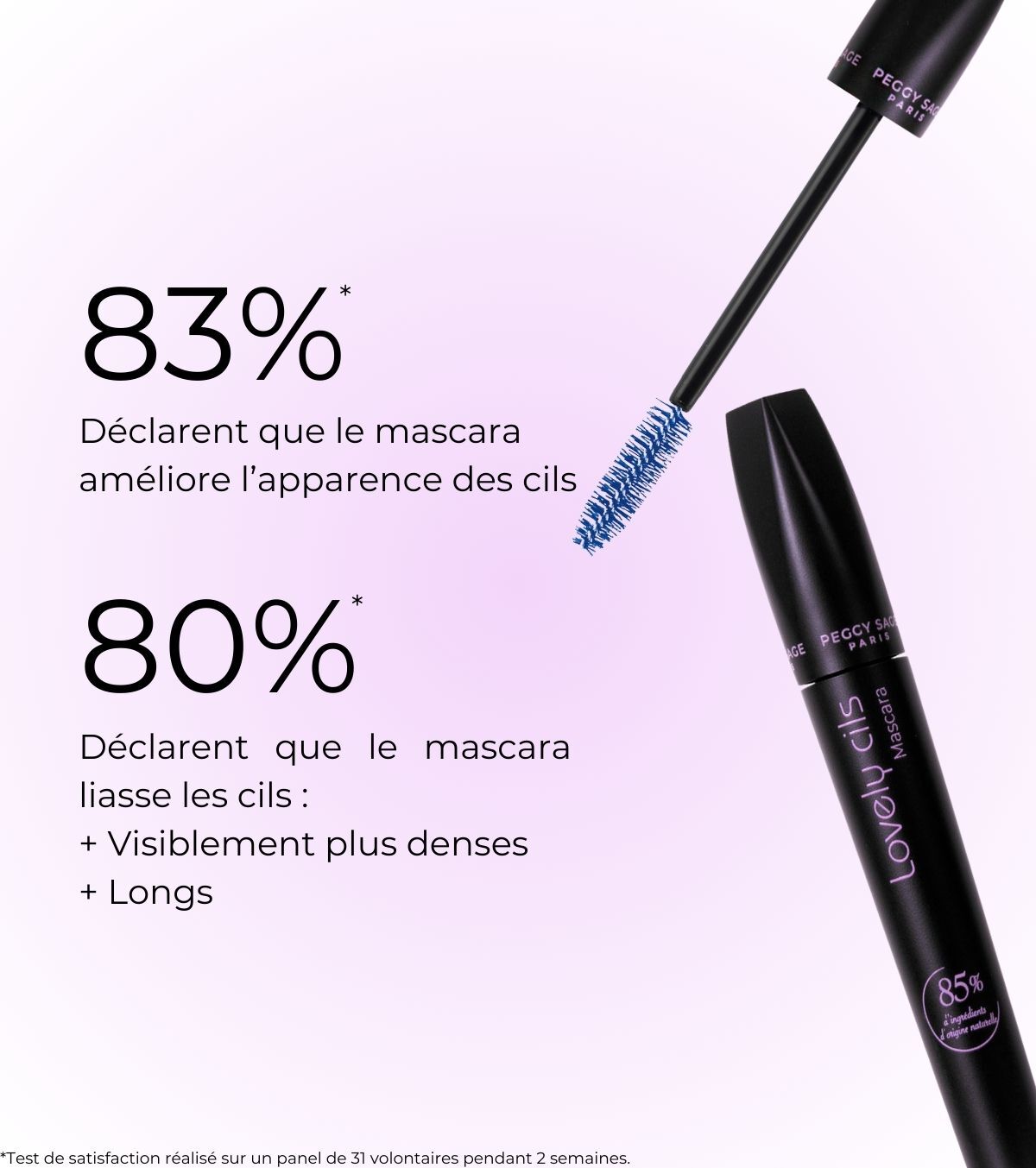 Amato da migliaia di utenti, Lovely Cils è il mascara più venduto di Peggy Sage. Continua a sedurre grazie ai suoi risultati eccezionali: le ciglia sono valorizzate, rivelando una lunghezza perfetta e una densità notevole.