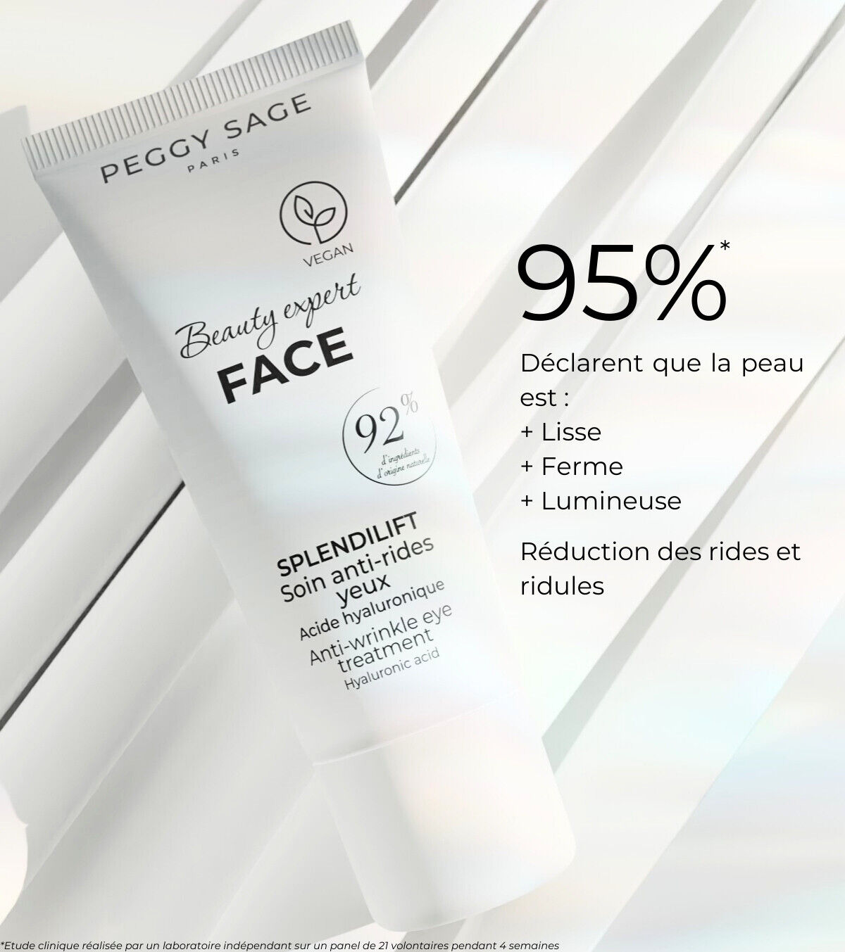 Alleato indispensabile per gli occhi stanchi, il Trattamento Antirughe Contorno Occhi – SplendiLift attenua i segni del tempo grazie alla sua azione rassodante, tonificante e levigante. Questo trattamento vegano, prodotto in Francia, con il 92% di ingredienti di origine naturale, è arricchito con acido ialuronico, estratto di proteine di soia ed estratto di alghe rosse, per un aspetto visibilmente più giovane!