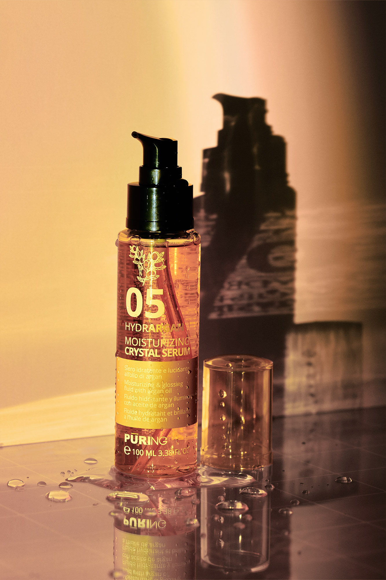 Crystal Serum di Puring è un siero leave-in idratante e lucidante a base di Olio di Argan e Olio di Semi di Lino, formulato per donare brillantezza e morbidezza ai capelli senza appesantirli. Ideale per capelli opachi, secchi o stressati, migliora la pettinabilità e sigilla le cuticole, contrastando crespo e doppie punte.