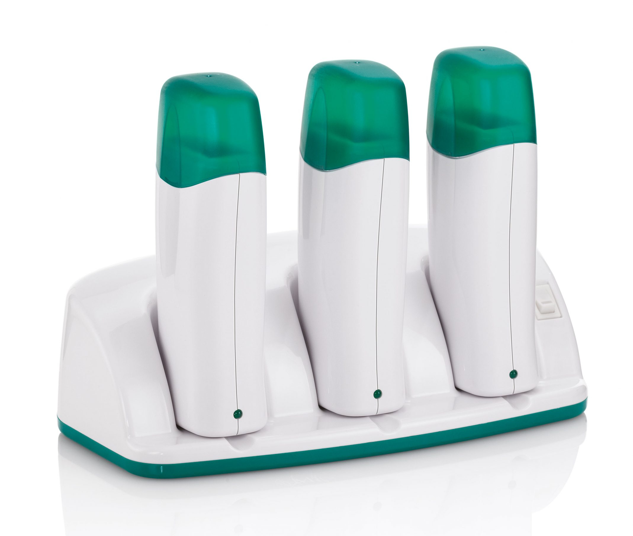 Base di connessione con 3 manipoli scaldacera per ricariche da 100 ml.