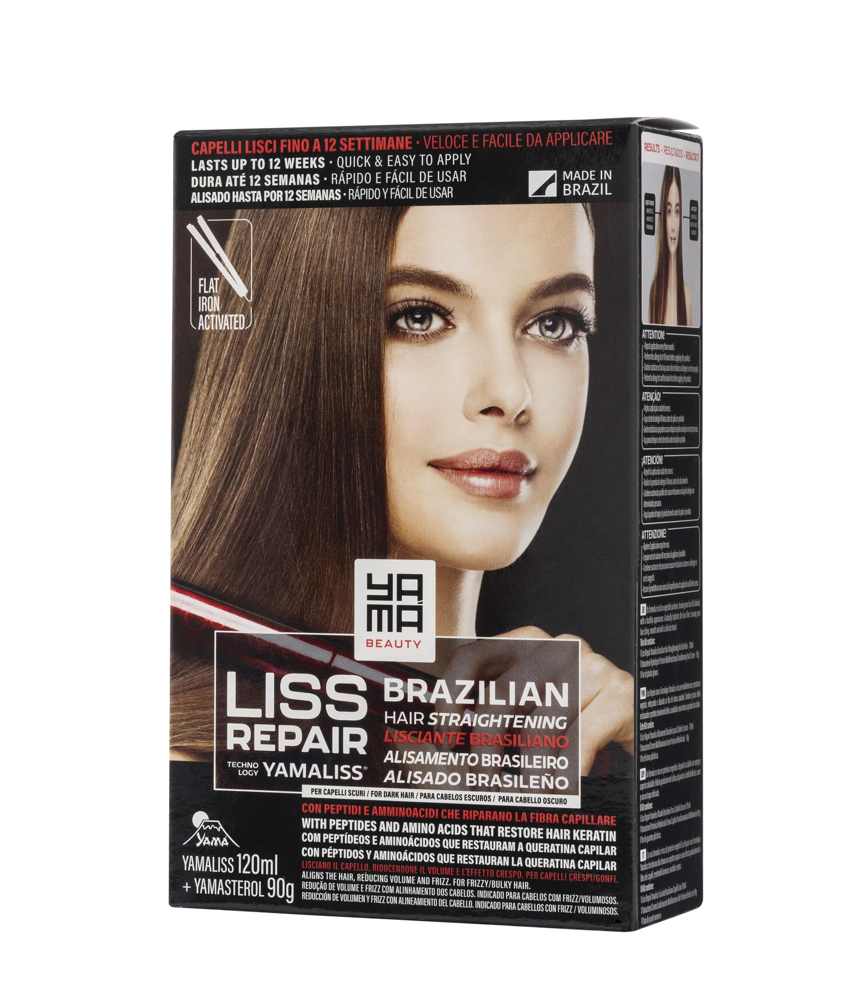 Il Yamaliss Liss Repair Kit Yamá è un trattamento lisciante brasiliano professionale alla cheratina, studiato per capelli scuri e formulato per offrire una lisciatura intensa, disciplinata e duratura fino a 12 settimane, rispettando la struttura del capello.